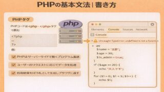 前の記事では、PHPがサーバー側で動く言語であり、Webサービスの裏側を支えている存在だということを学びました。ここからは、実際にPHPを書くための基本文法に入っていきます。この記事の目的は、難しい構文を覚えることではありません。PHPのコ...