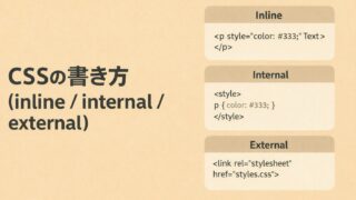 Web開発学習ロードマップ4-2 CSSの書き方(inline / internal / external) 前の記事では、CSSがWebページの見た目を担当する言語であり、HTMLとは役割が分かれていることを学びました。次に出てくる疑問は、ほぼ確実にこれです。・CSSはどこに書けばいいのか・HTMLの中?別ファイル?・書き方が複数あって混乱するC...2025.12.16Web開発学習ロードマップCSS基礎