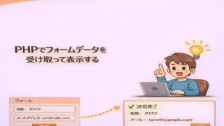 Web開発学習ロードマップ 6-8 PHPでフォームデータを受け取って表示する ここまでで、PHPの基本文法・条件分岐・繰り返し・配列を学んできました。しかし、「PHPがWebとつながっている実感」がまだ薄いと感じているかもしれません。その感覚を一気に変えるのが、フォームデータの受け取り です。・ユーザーが入力する・P... 2025.12.22 6.PHP基礎Web開発学習ロードマップ