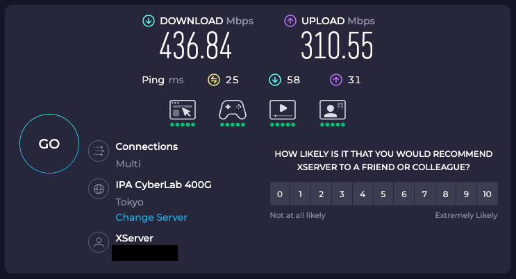 通常回線:下り400Mbps超